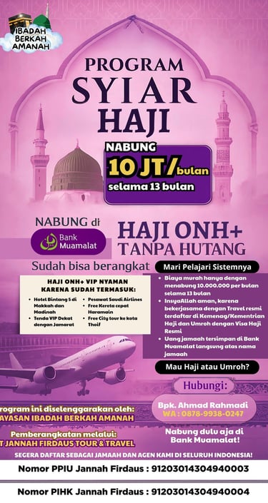 Layanan umroh dan haji terpercaya di Indonesia dengan tabungan di bank untuk pengalaman spiritual yang lebih baik berpartner dengan JANNAH FIRDAUS TOUR DAN TRAVEL